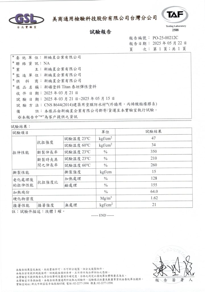 タイタン Titan 防水塗料はドイツから輸入した特殊なアクリル系超耐候性エマルジョンから開発された製品である。高い弾性と柔軟性両立し、マイクロファイバーが含まれ、様々な特殊原料から開発された一液型の紫外線防止コーティングであって、施工後伸び率や微酸素透過度を持つようになり、無毒、耐候性及び加水分解されていないなどが特徴となり、新築物件だけでなく耐ひび割れ性も高く、古民家の更新にも一番の選択である。平面でも、モルタルテクスチャパターンでも砂礫テクスチャパターン、打放しコンクリート風まで、短毛ローラーやスプレーガンを使用して下さい。