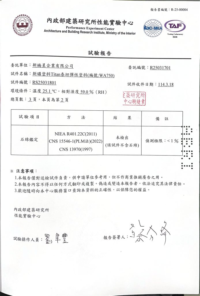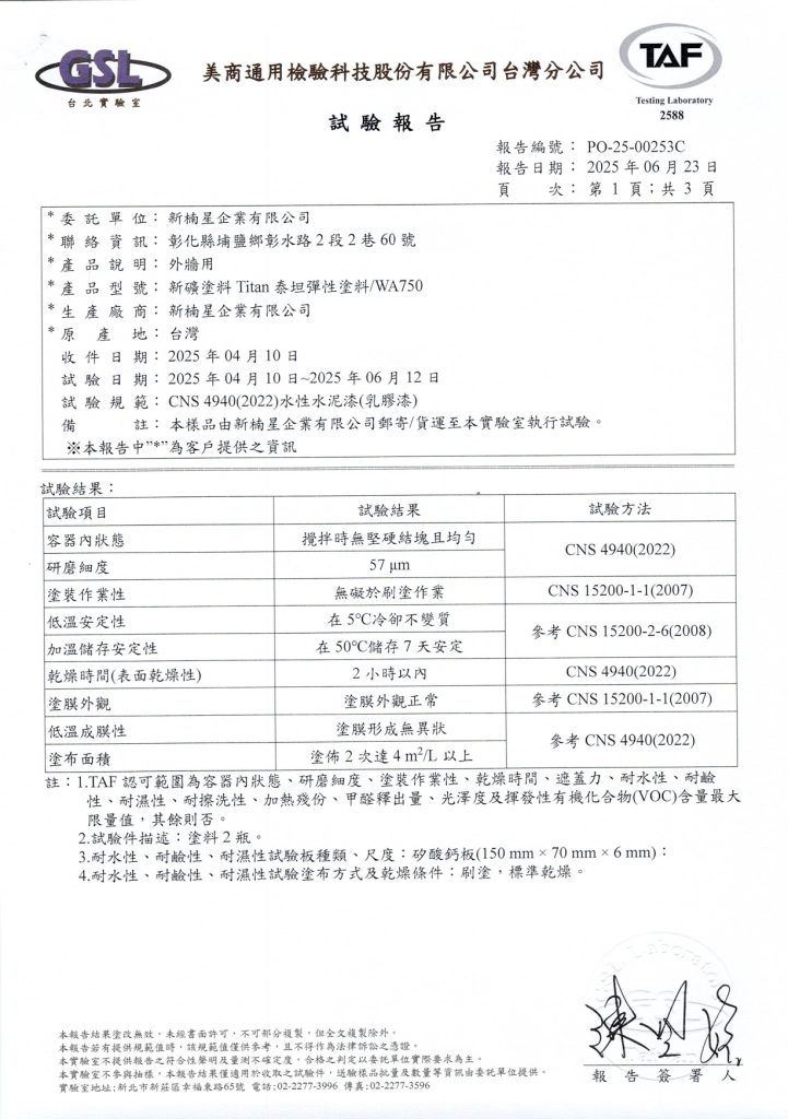 Titan 泰坦防水漆為德國進口特殊丙烯酸超耐候乳液研製而成,具備有高彈性及柔韌性,內含超微細纖維素及多種特殊原料研製而成的單劑型抗紫外線塗料,施作後具延展率、微透氧率、無毒性、耐候性及不水解等特點。不僅在新建物中可使用,其高抗裂特性也是老屋翻新首選,可施作平面、江波紋、砂礫紋、仿清水模等紋理,可使用短毛滾輪或噴槍。外牆翻新所需工序及材料,請聯繫業務,由專人為您提供最佳解決方案。
